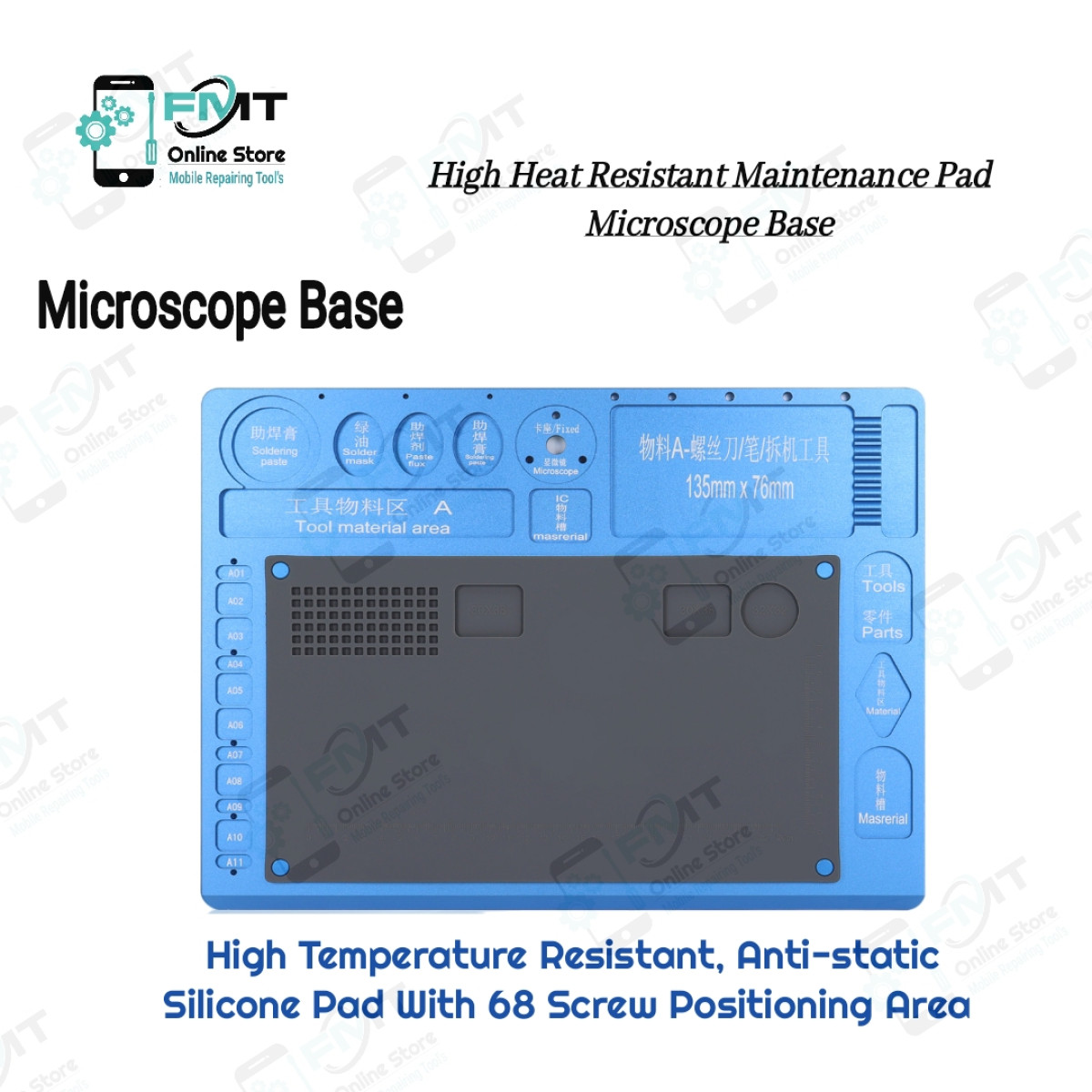 Binocular/Trinocular Microscope Large Big Base Silicone Heat Resistant Repair Pad Mobile Phone Maintenance Platform. Aluminum Microscope Phone Maintenance Platform Metal Stand Base Universal Microscope Base With Silicone Pad